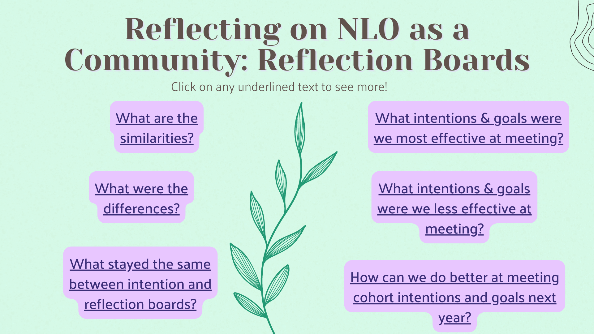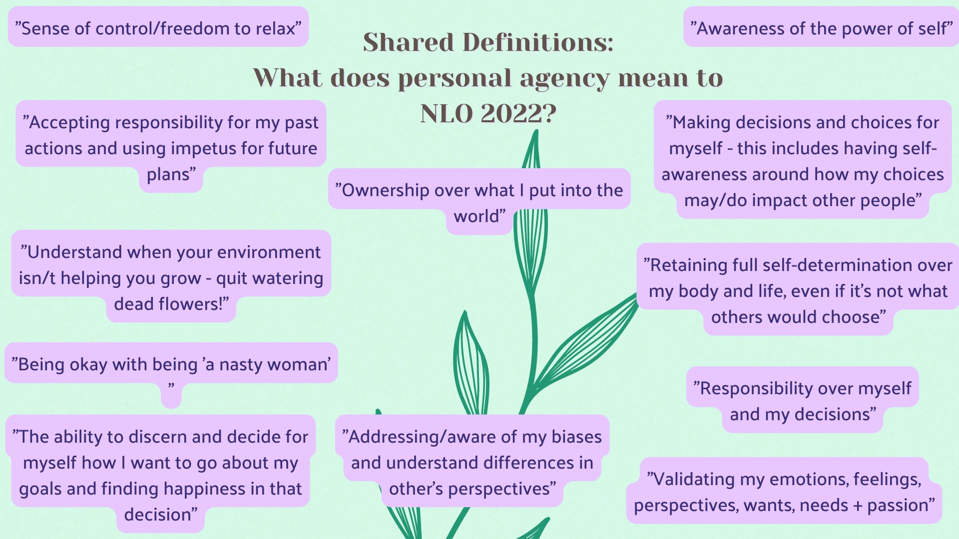 At NLO 2022, we facilitated evaluation practices with participatory elements, including our shared definitions, visuals & infographics, and participant-centered Intention and Reflection arts activities.