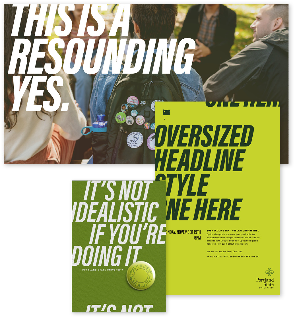 The Portland State University Brand is much more than a logo or history. Our brand is what students, parents, faculty, alumni, peers and outside observers think, feel and respond to when they encounter anything and everything Portland State University. By using established brand standards, tools and templates, our look and feel will remain consistent. Maintaining a strong, unified voice ensures that our brand won’t be diluted or misconstrued. Amid the complexities that make up Portland State University, there are very few times that we ask our community to be single-minded. This is one of them.