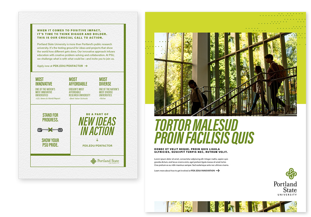 A standard headline rendered in Acumin Pro Extra Condensed, formatted in all caps with medium-to-heavy weights, italicized, and tight tracking and leading. This headline style is strong and declarative. Headlines should employ weights within the range of Medium to Black and be styled in italics to give a sense of prominence and momentum. The extra condensed style coupled with tight tracking and leading lends a feeling of urgency that is a backbone of the PSU Brand.